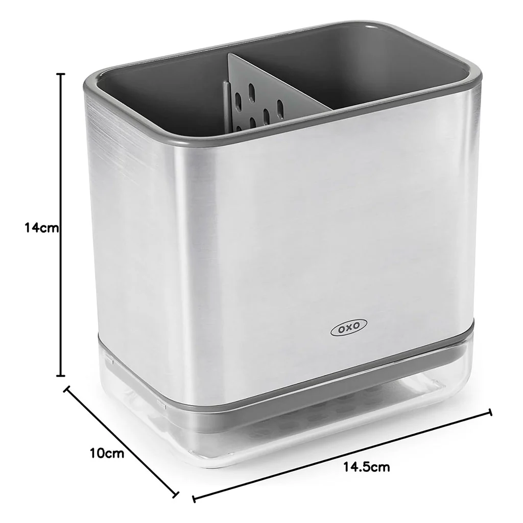 El Soporte para cepillos y estropajos de acero inoxidable OXO se trata de un accesorio práctico y elegante, ideal para mantener siempre organizadas y a mano tus esponjas, estropajos, cepillos de limpieza e incluso cubiertos.
