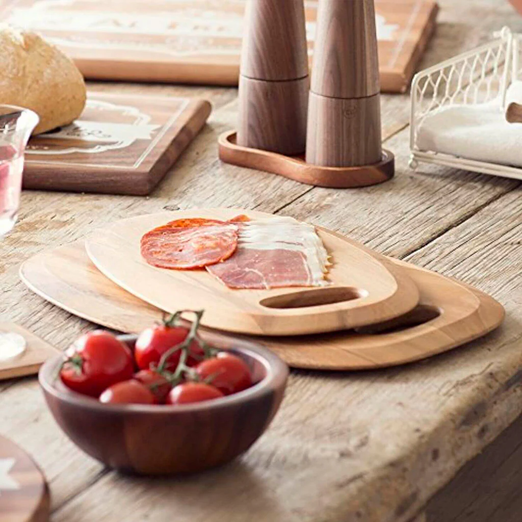 - Al ser de madera de acacia, es una tabla resistente, ideal para cortar todo tipo de alimentos en la cocina.