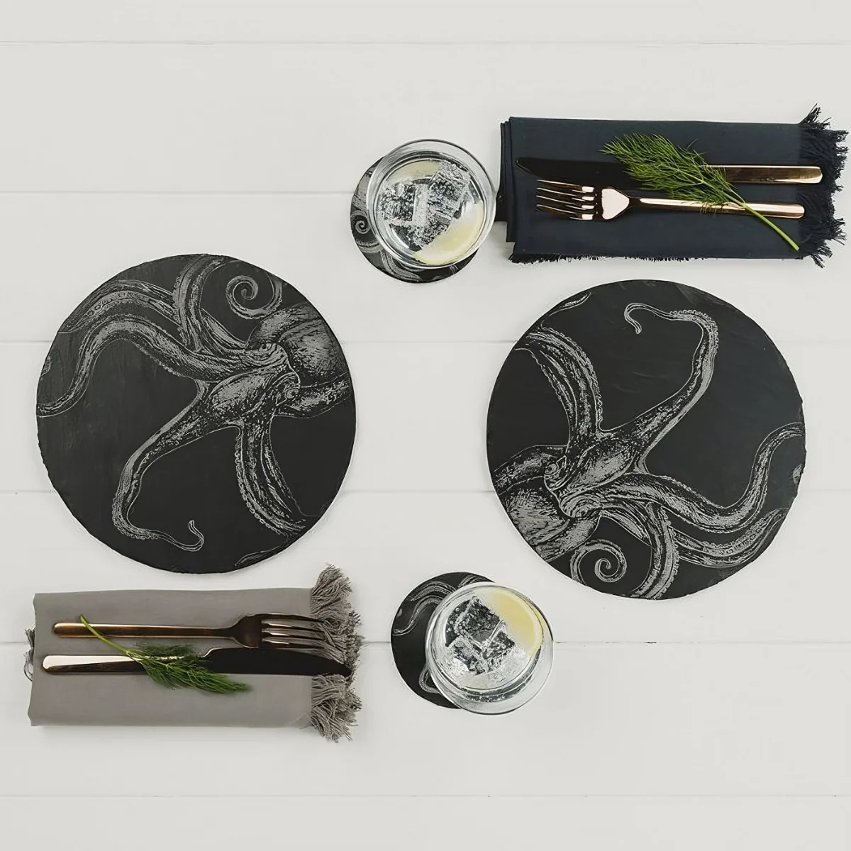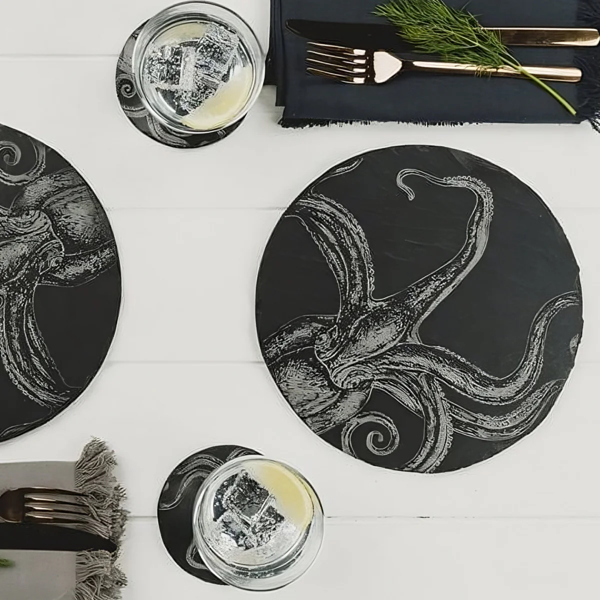 - Hecha a mano con pizarra natural y con grabado de la imagen de un pulpo finamente ilustrada a mano.