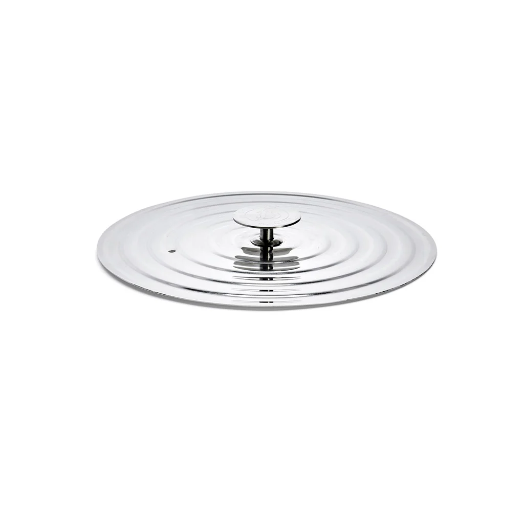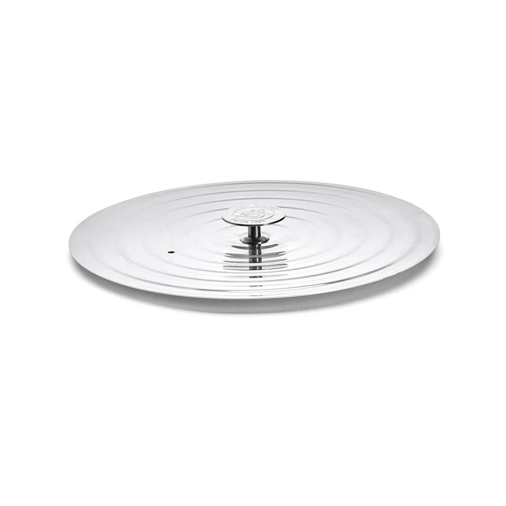 La Tapa de acero inoxidable para sartén De Buyer es una tapa universal apta para todas tus sartenes, paelleras, sautés, cazos y woks, sean de hierro, de acero inoxidable o antiadherentes. Ideal para evitar salpicaduras, es muy robusta y tan práctica como elegante. Dispone de un perfil reforzado que le proporciona una mayor estabilidad y a pesar de ser ligera, es de lo más resistente. Además, cuenta con un pequeño orificio que permite la salida del vapor.