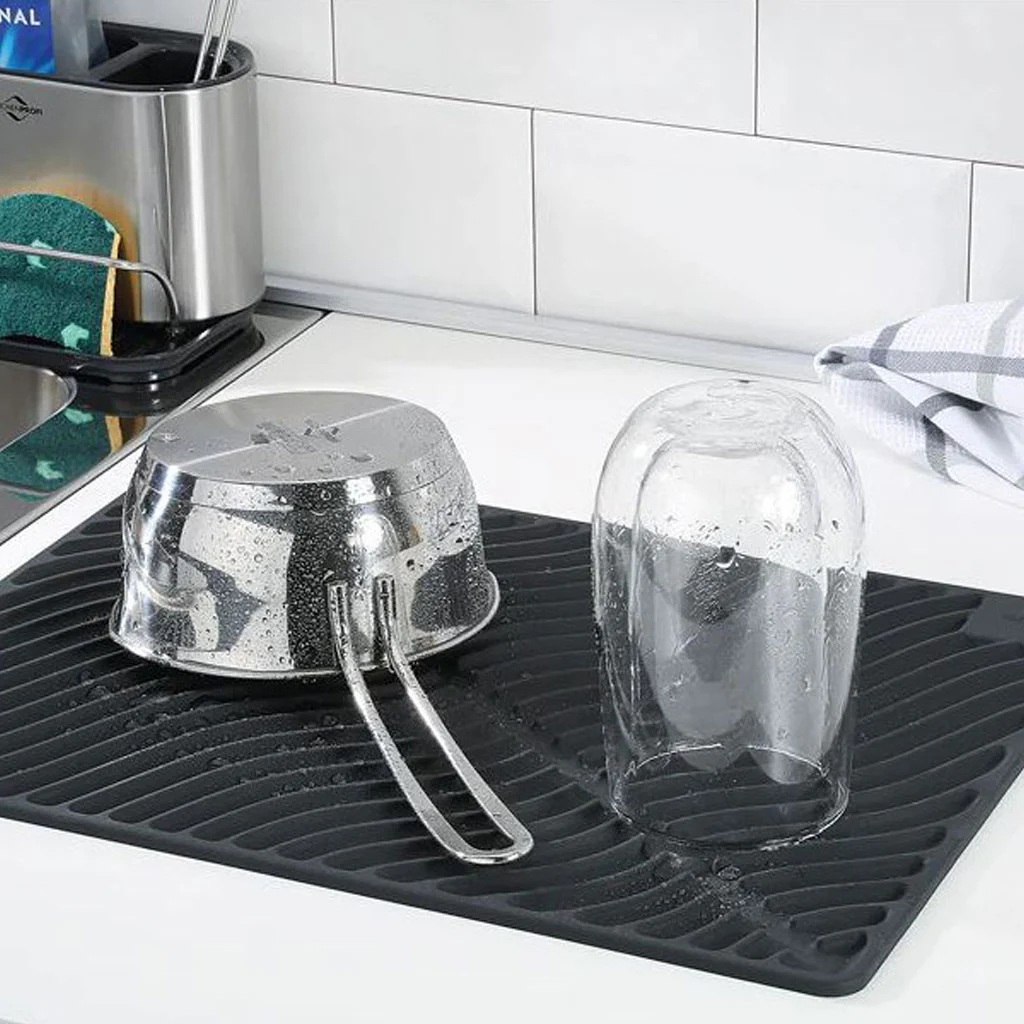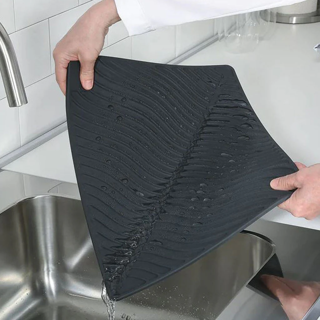 Sí, un escurreplatos tiene ventajas y sin duda este Tapete escurreplatos de silicona flexible Wave Küchenprofi presenta varias de ellas: