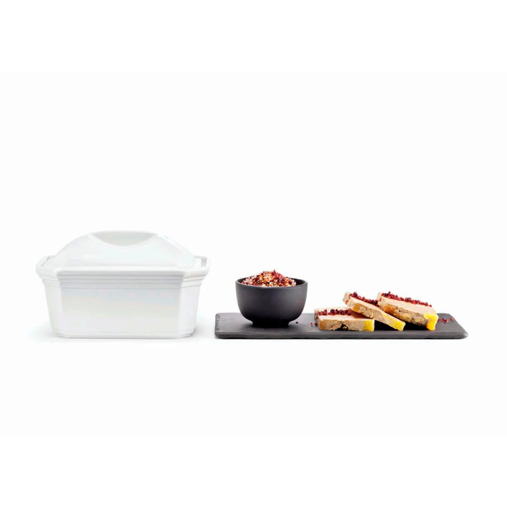 La Terrina rectangular con tapa French Classics Revol es un elegante molde de porcelana con tapa de lo más versátil. Es ideal para cocinar en el horno todo tipo de patés y pasteles de carne, verduras o pescado, con unos resultados maravillosos, gracias a la fantástica cocción que proporciona la porcelana. Es también una opción perfecta para hornear plumcakes, bizcochos y panes. Y como mantiene la temperatura estupendamente, es también perfecto para tus preparaciones frías.