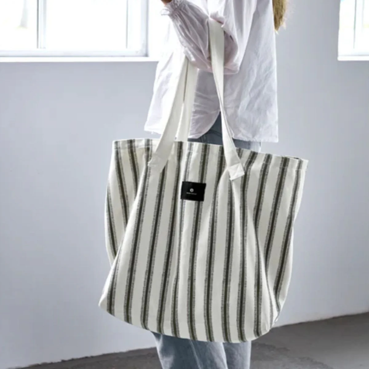 Elegante, práctica, espaciosa y la mar de bonita. La Tote bag Canva House Doctor lo tiene todo para enamorarte. Verás como este bolso de lona hecho a mano es perfecto para los días de playa, para ir de pícnic, para las escapadas de fin de semana, para ir al mercado o para llevar todo lo que necesites cuando bajas al parque con los peques o con tu mascota. Porque las rayas y el estampado étnico nunca pasan de moda, y no hay nada mejor ni más útil que una bolsa en la que cabe todo y que sea tan versátil como cómoda de llevar.