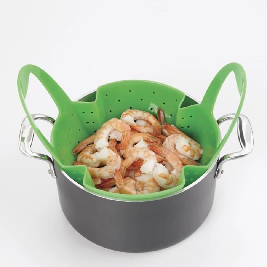- El cesto de silicona se flexiona para adaptarse a todo tipo de ollas o ollas a presión que tengan un diámetro de 18 cm o más.