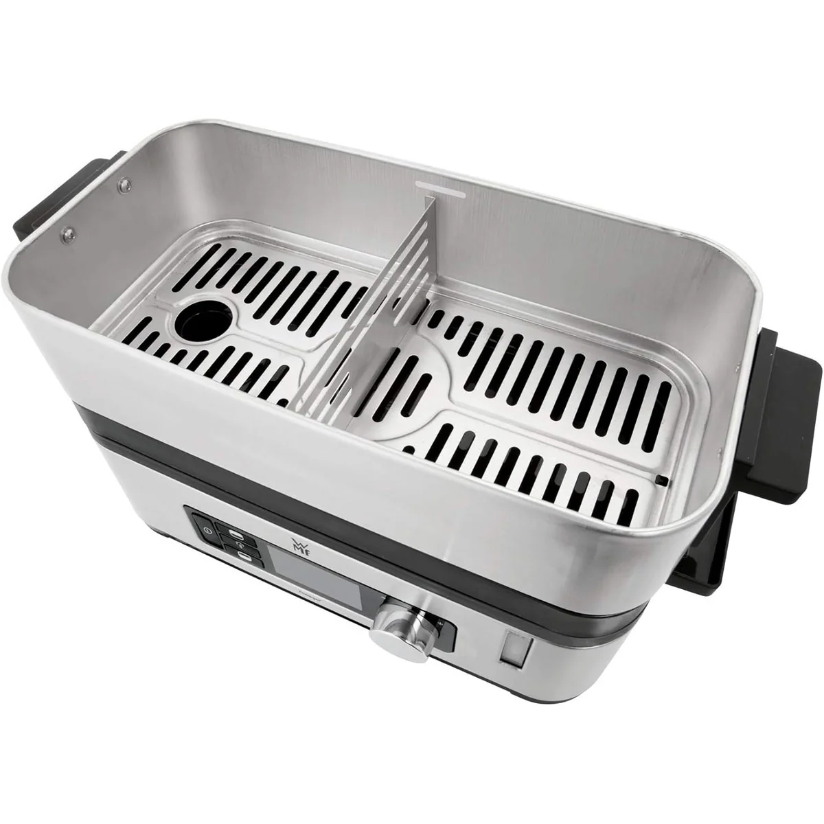 Dispone de dos zonas de cocción, de 2,15 litros de capacidad cada una, separadas para evitar mezclar alimentos o sabores. El depósito de agua, de 1,1 litros de capacidad, se puede rellenar de forma externa, además de permitir rellenarse mientras la vaporera está funcionando.