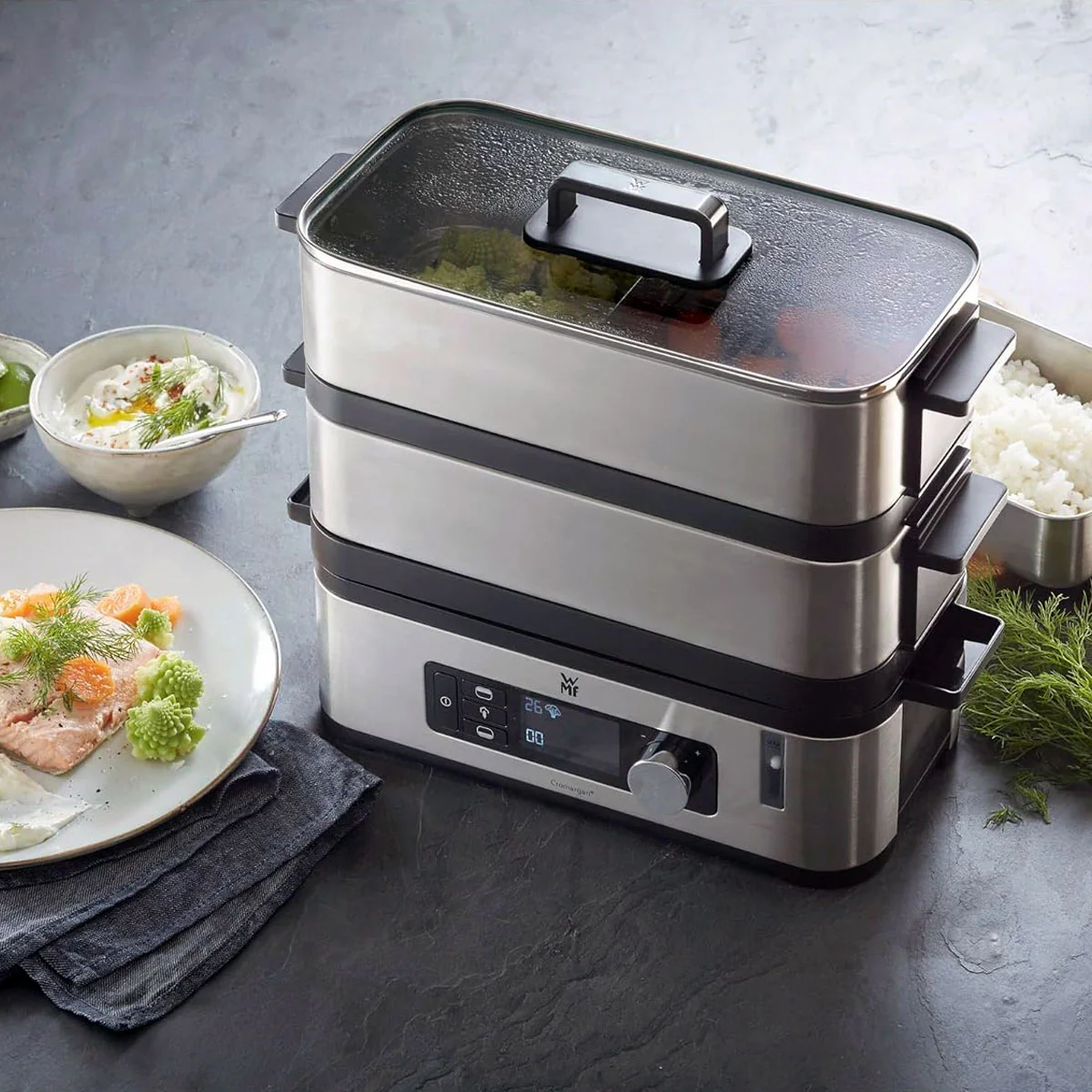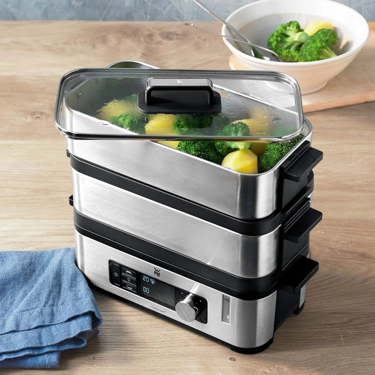 Con la vaporera Vitalis KitchenMinis WMF podrás cocinar de la forma más sana conservando todos los nutrientes y sabores de los alimentos. Fabricada en acero inoxidable 18/10 Cromargan®, es totalmente neutra a los sabores y es muy higiénica y fácil de limpiar.